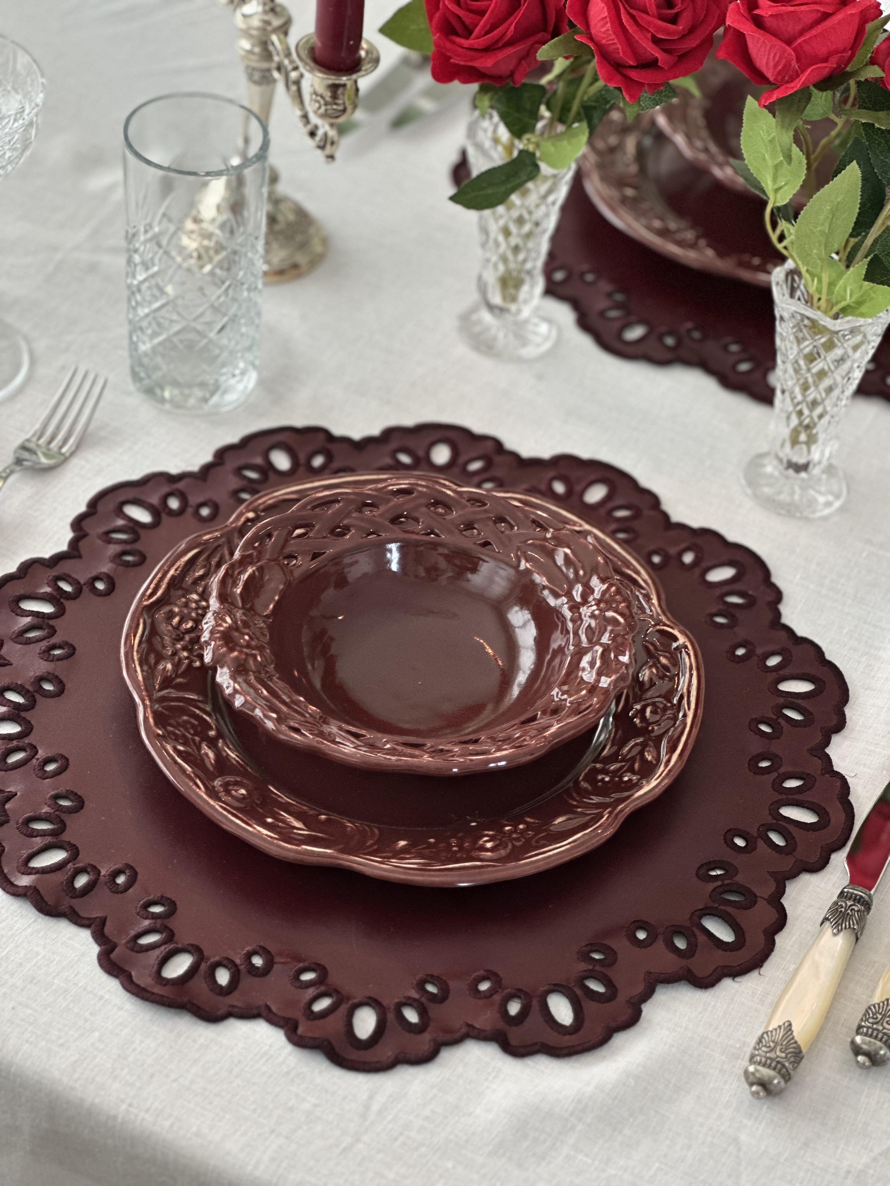 40 cm Çember Nakış Detaylı Deri Amerikan Servisi