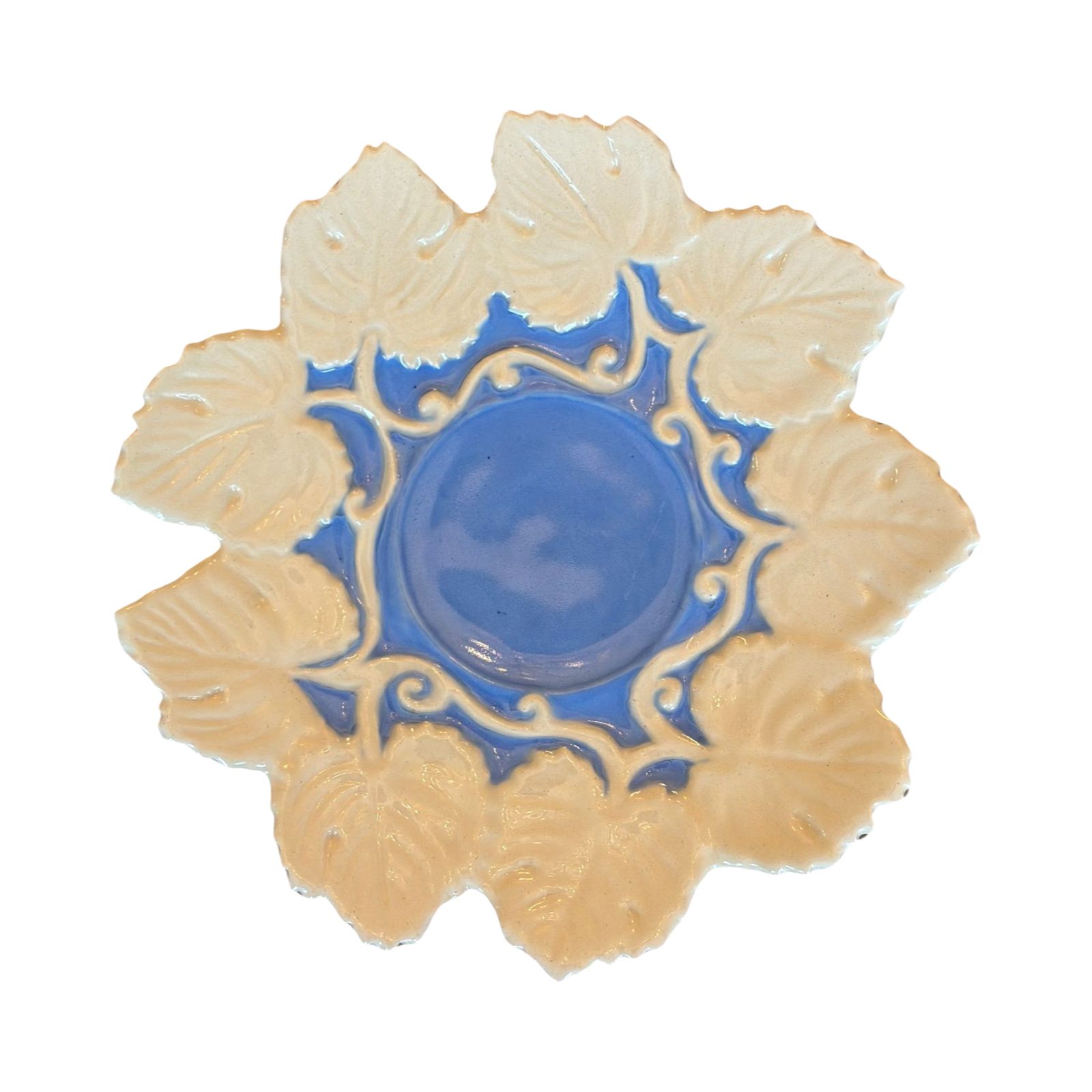 HANDMADE SERAMİK MAVİ ÜZERİ BEYAZ YAPRAK DETAYLI TEA CUP